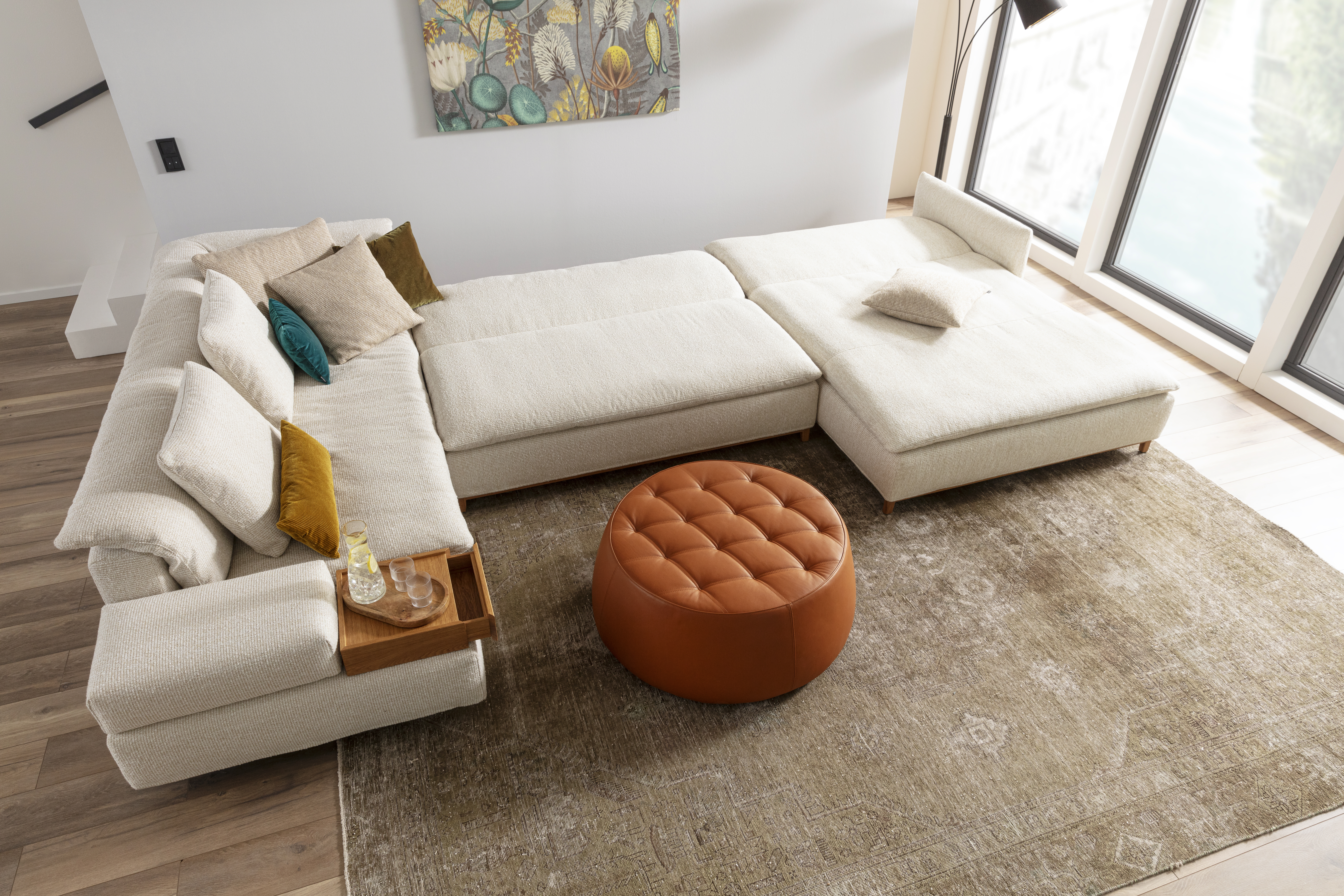 Man kann dieses Ecksofa mit Schlaffunktion wählen, aber auf diese auch verzichten, wenn man nur ein tolles Design-Sofa mit einer charakteristischen soften Polsterauflage für den Wohnraum möchte.